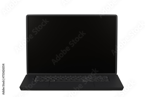 3d Realistic laptop computer notebook device with blank white screen display on isolated white background. 3d Black laptop computer notebook. minimal creative design icon. 3d rendering. illustration.