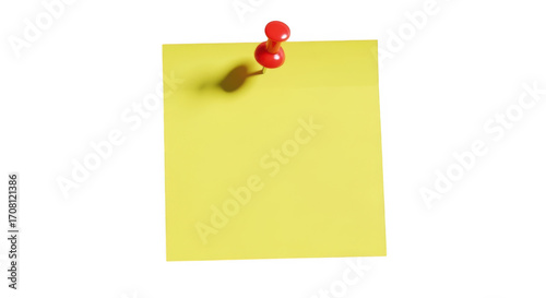 3d realistic yellow sticky note pinned with red thumbtack transparent background