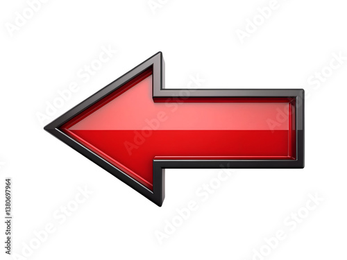 3D Red Arrow Pointing Left, Isolated transparent background.