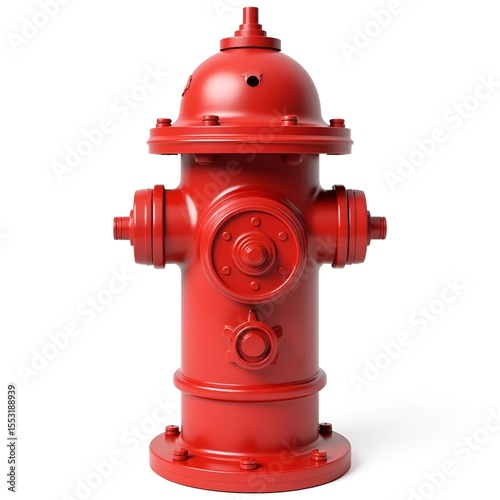 3D Red Fire Hydrant with Glossy Finish Isolated on Transparent Background