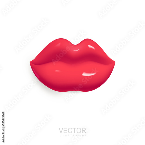 3d red lips icon. Vector sexy female red lips. Realistic Elements for romantic design. Isolated render object