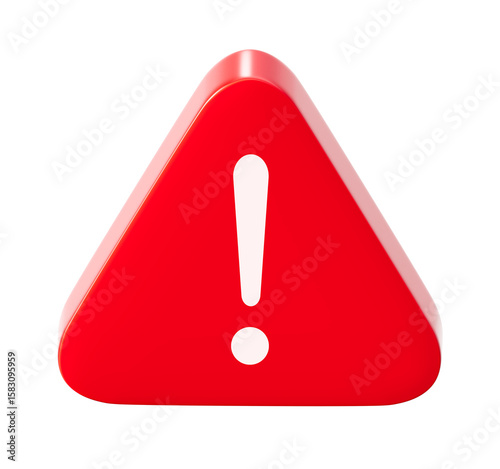 3D Red Warning Sign Transparent PNG Background Alert Danger Exclamation.