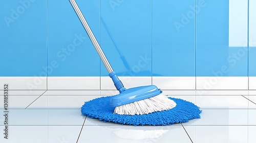 3D Render: A Blue Spin Mop Cleaning Tile Floor AI Generated