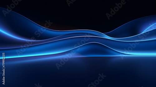 3d render, abstract minimal neon background with glowing wavy line. Dark wall illuminated with led lamps. Blue futuristic wallpaper