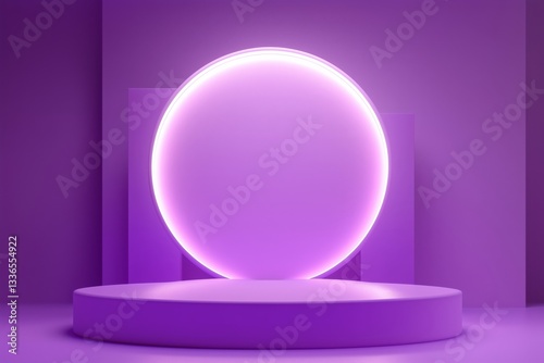 3d render. Abstract modern minimal pastel violet background illuminated with bright light. Showcase scene with cylinder podium for product presentation