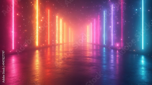 3d render abstract panoramic backgroun3d with colorful spectrum bright colorful neon rays an3d glowing lines