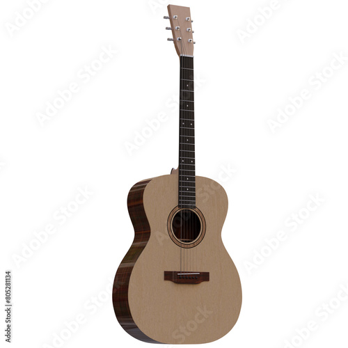 3d render acoustic guitar with transparent background
