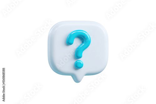 3D Render Blue Question Mark in White Speech Bubble icon symbol isolate
