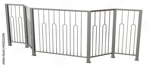 3D render features a captivating Art Deco balustrade with handrail and a simple round pattern (transparent background). Elevate your exterior design with a touch of timeless elegance.