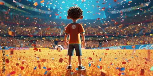 3D Render Football Player Standing in Soccer Stadium, Future Dream to Be a Professional Footballer. Generative AI