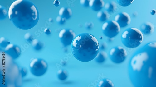 3D render illustration of blue balls falling against a blue background. Suitable for advertising.