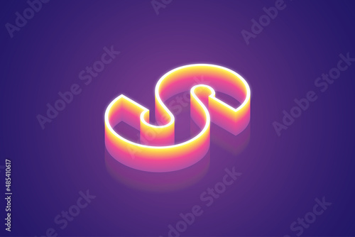 3d render, letter S, the best digital symbol illustration for meta tech concept, pink purple gradient neon light glowing on the dark blue-purple background