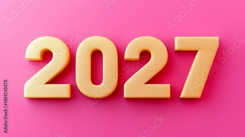 3D Render of 2027 Gold Numbers Against a Vibrant Pink Background, Perfect for New Year Concepts