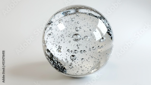 3D render of a decorative glass orb with bubbles inside on white background