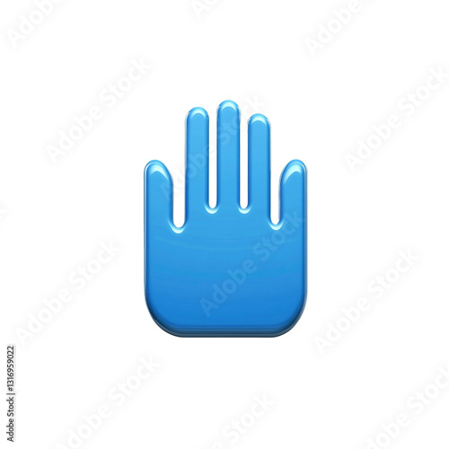 3D Render of a Glossy Blue Hand Icon - Stop Gesture