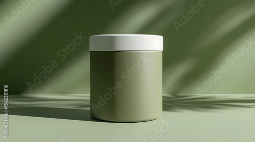 3D render of a green bottle with a white cap against a textured green wall with dramatic shadows.