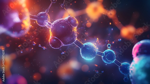 3D Render of a Molecular Structure with Glowing Spheres and Lines