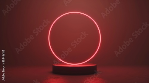 3D render of a podium stand, minimalistic design, circular neon glow, isometric view, soft shadows, high detail