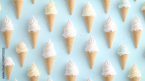 3D render of A striped pattern of ice cream cones with different flavors layered on top of each other , on clean background