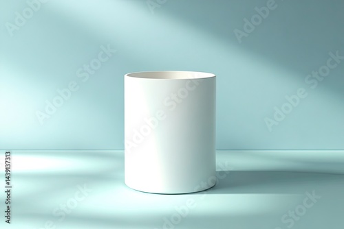3D render of a white cylindrical podium on a pastel blue background with a soft shadow and light, a minimal scene for a product display presentation design mockup.