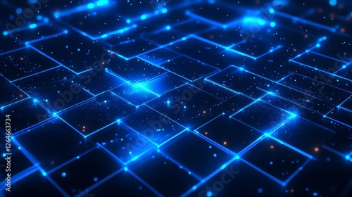 3D render of blocks with blue glowing lights, technology background