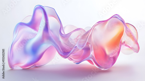 3D render of fluid, liquid shape with iridescent pastel color isolated on on white background