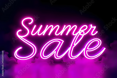 3D Render of Glowing Neon "Summer Sale" Text in Cursive Script, Vibrant Pink and Blue Neon Lights, Perfect for Digital Ads and Social Media Banners