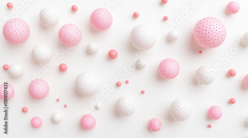 3D render of pink and white spheres with delicate patterns, conveying softness and tranquility.