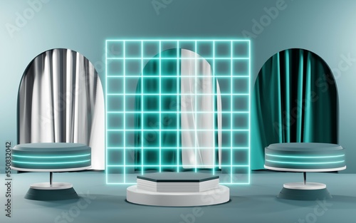 3D render of Podium background in blue tones for displaying cream products. cosmetics