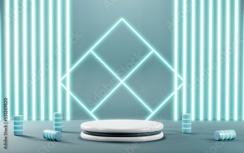 3D render of Podium background in blue tones for displaying cream products. cosmetics
