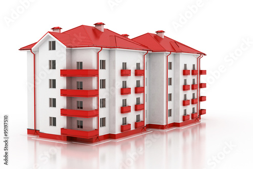 3D render of the building. The house has an apartment on a white background.