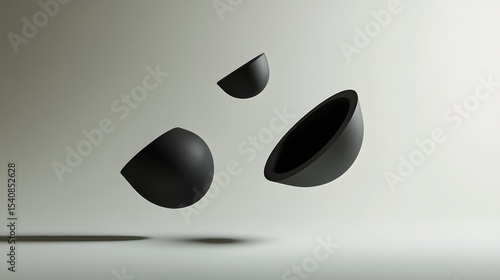 3D render of three black, stylized teardrop shapes floating against a muted grey background.