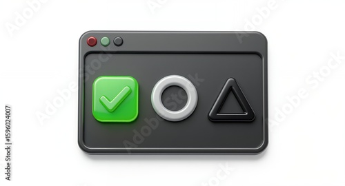 3D Render of Web Interface with Checkmark Circle and Triangle Symbols