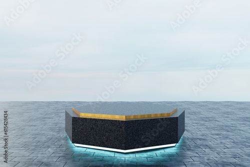 3d Render, Scifi Landscape Futuristic post apocalyptic scenario with abstract alien landscape. Glass object.