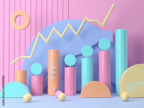 3D Render stock market signs pastel color in plastic cartoon style illustration. AI generated
