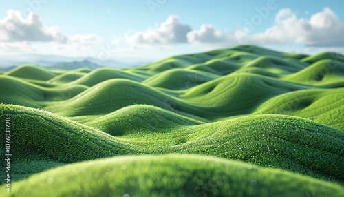 3d render Surreal green shaggy surface Grassland mountain landscape background