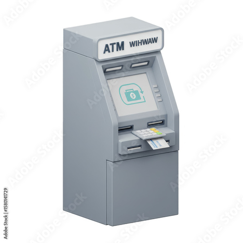 3D Rendered ATM Machine for Banking and Finance Needs Illustration