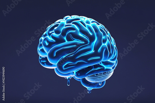 3D Rendered Blue Brain with Dripping Liquid: Illustrative Medical or Scientific Image