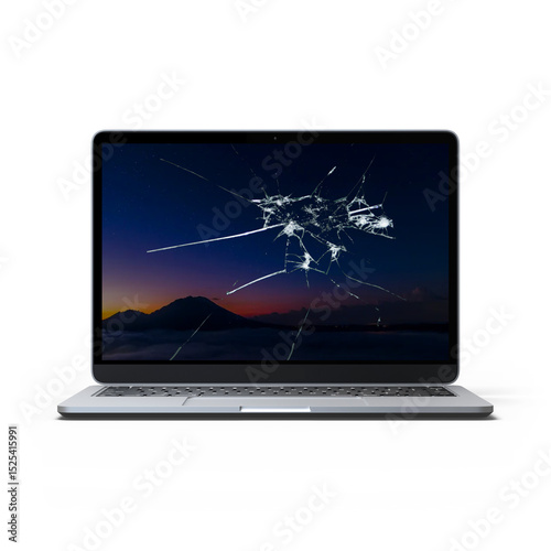 3d Rendered Broken Screen Laptop Isolated on white background - Cracked and Smashed Screen Laptop