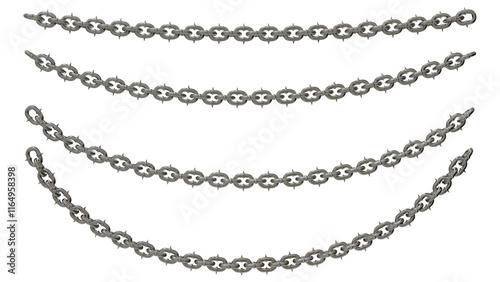 3D Rendered Chains: High-quality 3D renderings of metal chains with sharp tips.