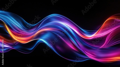 3D rendered colorful neon light wave lines on black background, abstract gradient night scene wallpaper