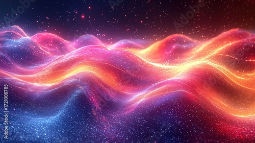 3D rendered colorful neon light wave lines on black background, abstract gradient night scene wallpaper