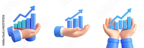3D Rendered Hands With Blue Sleeves Holding Growing Stock Chart Depicting Financial Success Against Transparent Background