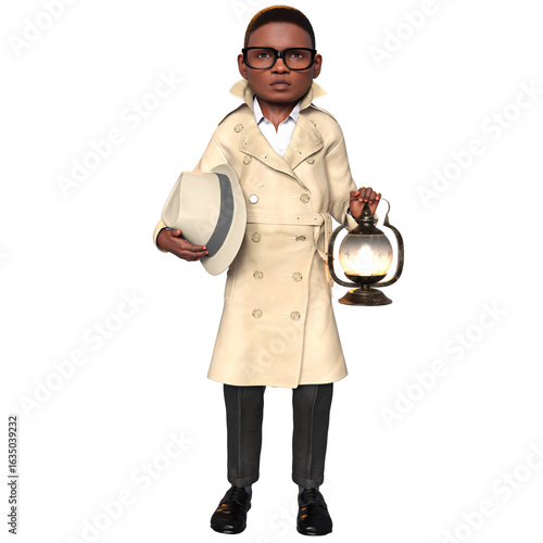 3D rendered illustration of a boy sleuth character, isolated on transparent background