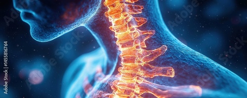 3D rendered illustration of the human neck spine in glow effect