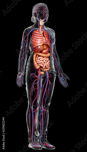 3d rendered medically accurate illustration of female Internal organs and circulatory system