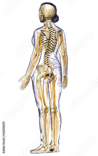 3d rendered medically accurate illustration ofa female nervous system and skeleton system