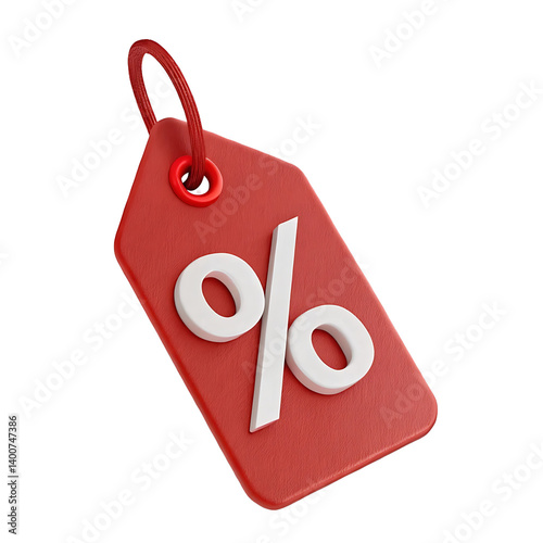 3D Rendered Red Discount Tag with Percentage Sign