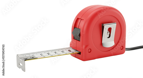 3D Rendered Red Tape Measure Tool Isolated Transparent Background