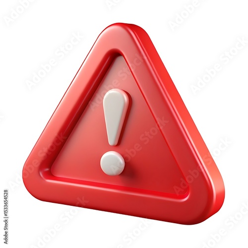 3d rendered red warning sign with white exclamation mark isolated on white background